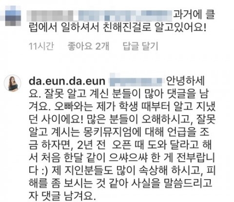 버닝썬의 실소유주와 연관된 것으로 알려진 몽키뮤지엄에 대한 관심도가 고조되면서 여기서 근무한 과거가 있는 것으로 알려진 송다은에게도 총구가 겨냥되고 있는 것.