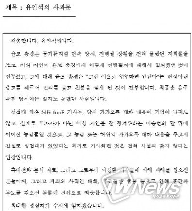 사과문에서 유인석은 그러나 윤 총경을 '형으로 따랐다'고 인정했다.