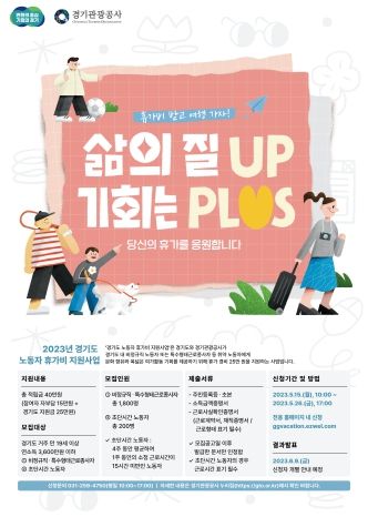 참여 희망자는 오는 15일부터 26일까지 경기관광공사 누리집(gto.or.kr)을 통해 신청하면 된다. 선정된 노동자는 오는 6월부터 11월까지 본인의 적립금을 활용, 전용 온라인몰을 통해 여행상품, 관광지 입장권, 체험프로그램 등 다양한 콘텐츠를 이용할 수 있다.