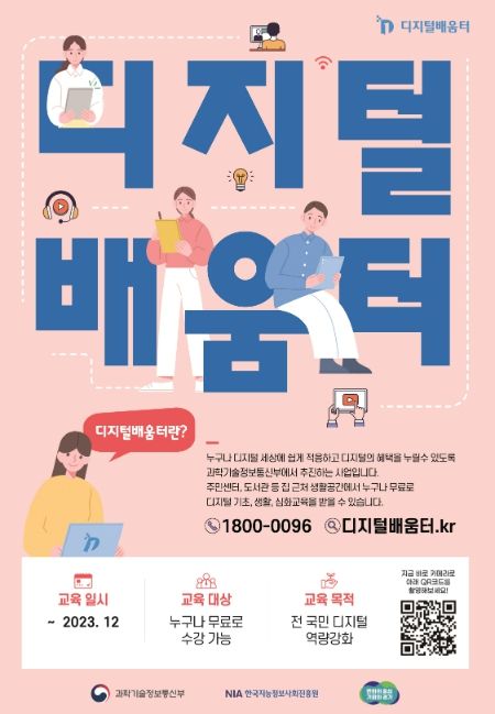 무료로 운영하는 디지털 배움터는 집합·온라인 교육을 병행해서 수강할 수 있다. 교육과정은 기초, 생활, 심화, 특별 4개 과정으로 운영된다. ▲(기초) 온라인 계정 생성, 앱스토어 등 기초적 디지털 사용법 ▲(생활)키오스크, 모바일교통, 금융, 전자정부, 공공서비스(지원금 신청) 등 ▲(심화) 인공지능(AI), 기초코딩, 앱개발, 물리컴퓨팅(피지컬컴퓨팅)1) , 데이터 ▲(특별)신기술체험(3D프린팅, 드론), 소프트웨어·AI 체험, 분야별 전문가 강연 등이다.