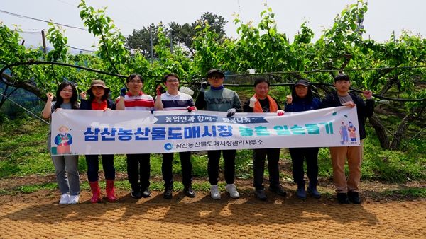 삼산농산물도매시장은 농번기에 어려움을 겪고 있는 농가의 일손 돕기를 추진하는 등 공공기관의 책임성 강화를 위해 도매시장 내에 근무하는 유통종사자(도매시장법인)와 함께 지속적인 지역사회 공헌활동을 추진하고 있다.