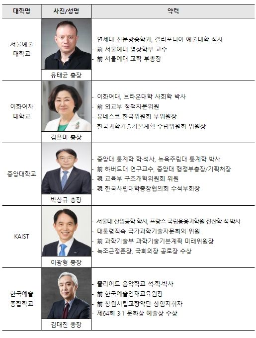 [제주교통복지신문 김강석 기자] 문화체육관광부는 K-컬처에 활력을 더하기 위해 서울예술대학교(총장 유태균)와 이화여자대학교(총장 김은미), 중앙대학교(총장 박상규), KAIST(총장 이광형), 한국예술종합학교(총장 김대진) 5개 대학이 5월 10일(수), ‘예술 및 문화콘텐츠 산업 인재 육성을 위한 업무협약’을 체결한다고 밝혔다.