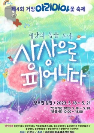 ‘세상의 봄을 모아 상상으로 피어나다’라는 주제로 펼쳐지는 이번 축제는 18일 개막식을 시작으로 생화 전시, 꽃 조형물 전시, 압화, 꽃 공예, 꽃차 등 꽃과 관련된 거창의 다양한 볼거리가 준비돼 있다.