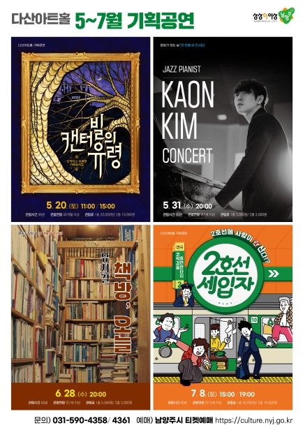 한편, 다산아트홀은 연초 공연 선호도 조사를 바탕으로 매월 시민들을 위한 다양한 기획공연을 개최하고 있으며, 자세한 공연 정보는 남양주시티켓예매 홈페이지를 통해 확인하거나 다산아트홀로 문의하면 된다.