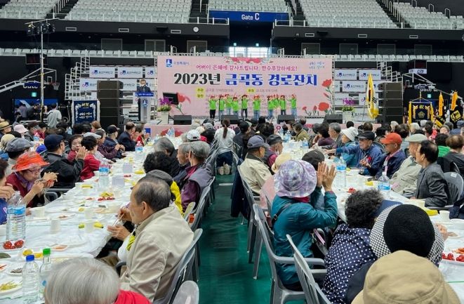 [제주교통복지신문 김강석 기자] 수원시 권선구 금곡동은 8일, 금곡동 단체장협의회 주관으로 어버이날을 맞아 부모에 대한 존경과 효를 되새기고 어르신에 대한 공경과 감사의 뜻을 전하기 위해 서수원칠보체육관에서 어르신 2,200여 명을 모시고 어르신과 지역주민이 하나 되는 ‘2023년 금곡동 경로잔치’를 개최했다.