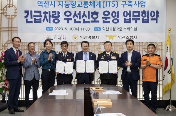 시는 10일 익산경찰서, 익산소방서와 시청 회의실에서 긴급차량 우선신호 운영을 위한 업무협약을 체결했다.
