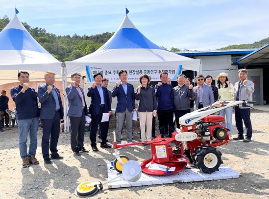이희수 농업기술센터 소장은“미나리 종묘 수확기 보급을 통해 과수농가 대비 기계화가 미흡한 미나리 재배 농가의 재배환경이 좀 더 효율적으로 개선되고, 농가소득 향상에 큰 도움이 되기를 기대한다”고 했다.