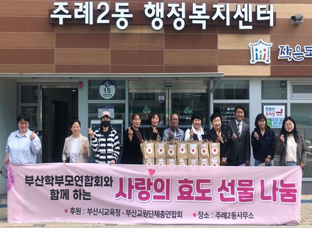 서현숙 주례2동장은 “어르신들을 위해 따뜻한 선물을 전해주신 부산 학부모연합회에 감사드리고 가정의 달을 맞아 더욱 어르신들에게 관심을 가지고 꼼꼼히 살피겠다”며 고마움을 전했다.