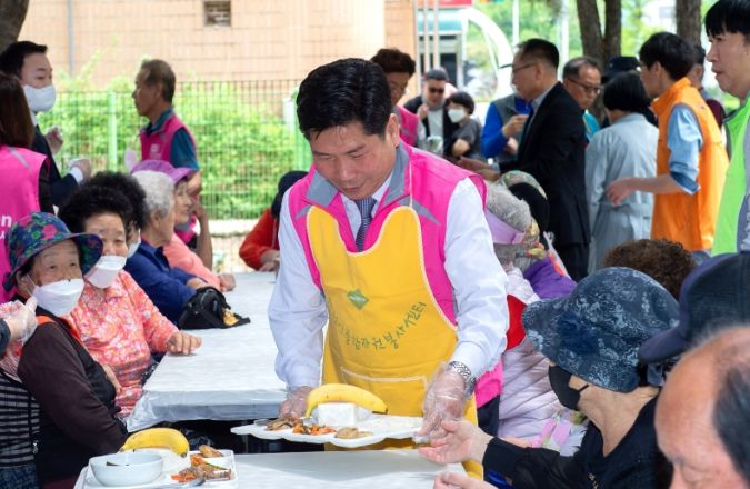 지역어르신 500여명이 참석한 가운데 김창규 제천시장을 비롯한 위원회 관계자 및 용두동 직원 등 모여 함께 봉사했다. 위원회 측은 사전에 준비한 수건 500여장을 어르신들에게 선물하기도 했다.