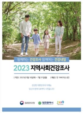 [제주교통복지신문 김강석 기자] 대전시는 오는 5월 16일부터 7월 31일까지 만 19세 이상 성인을 대상으로 ‘지역사회건강조사’를 실시한다.
