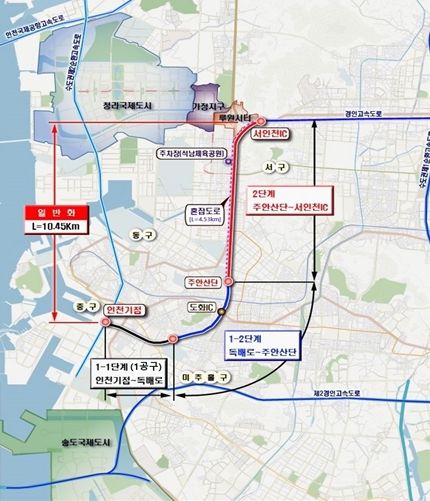 이번에 착공하는 구간인 1공구(인천대로 인천기점~독배로(인하로), 1.8km)는 지난해 1월 시공사가 선정됐었다. 그러나 당시 인천역 주변의 우회고가 철거공사와 공사기간이 겹치면서 주변 지역의 극심한 교통난이 우려돼, 시는 수 차례의 관계 기관 합동 회의 등을 거친 끝에 공사기간 중 운영 차로 수를 확대해 공사하기로 했다.