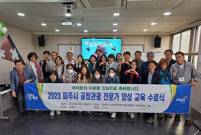 [제주교통복지신문 김강석 기자] 파주시는 10일, ‘2023년 공정관광 전문가 양성 교육’ 수료식을 열고 수료생에게 수료증을 수여했다.