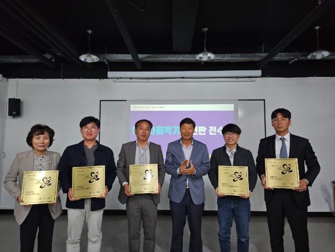 안산시사회적경제지원센터에서 진행된 수여식은 ▲문화예술사회적협동조합컬처75(문화·관광 콘텐츠 제작) ▲사단법인 가치있는누림(청년 임대주택사업) ▲(주)코리아클린체인지서비스(필터 제조) ▲도시숲센터사회적협동조합(SDGs 교육) ▲(주)디에스클린(다회용기 렌탈, 자원재활용) 등 5개 사회적 기업체 대표 및 관계자가 참석했다.