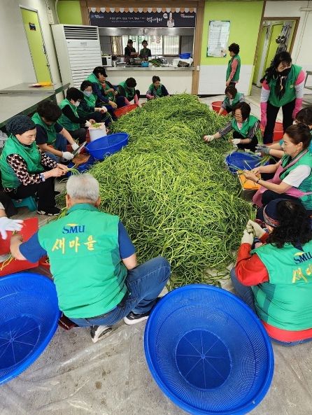 새마을회원 20여명이 이른 아침부터 담근 마늘종 장아찌는 숙성기간을 거친 후 관내 소외계층에 전달될 예정이다.