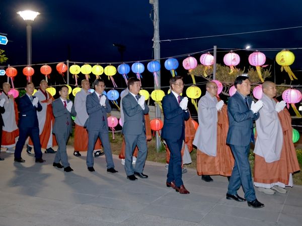 합천군불교연합회회장 진각스님은 봉축점등사를 통해 “군민 한분 한분이 각자의 위치에서 맡은바 소임을 다 해주셔서 감사하며, 모든 군민의 행복, 번영과 화합을 두손모아 기원한다”고 말했다.