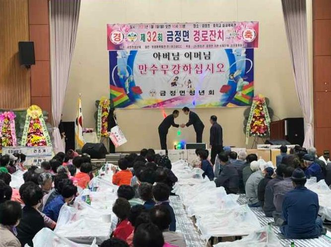 이어진 시상행사에서 효행상은 아천3리 김옥룡 씨가 받았다. 금정면 월평3리 김덕님(96) 할머니와 용흥3리 최성규(90) 할아버지는 장수 어르신 선물을 받았다.