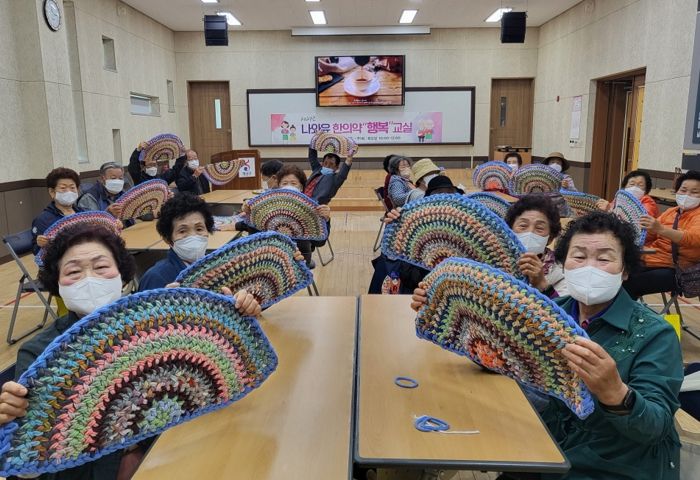 행복교실 프로그램은 어르신들의 인지능력 재활과 기억력 강화를 위해 한의사 개별상담 및 혈자리 총명침 시술, 원예·공예치료, 인지학습지를 통한 두뇌훈련, 인지키트를 활용한 자가 건강관리 등 다양하게 구성된다.