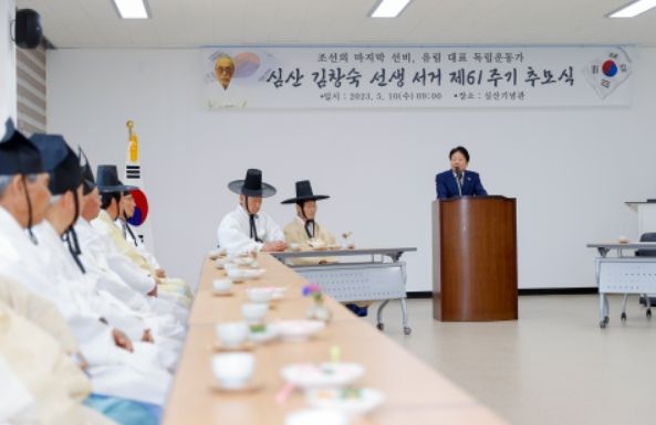이병환 성주군수, 김성우 성주군의회 의장을 비롯한 도의원, 군의원, 기관단체장, 유림단체회원 등 100여명이 참석한 이날 추모식에는 헌다례 및 헌화, 분향, 국민의례, 심산 김창숙 선생 어록낭독, 추모사, 차 나눔행사 순으로 진행됐다.
