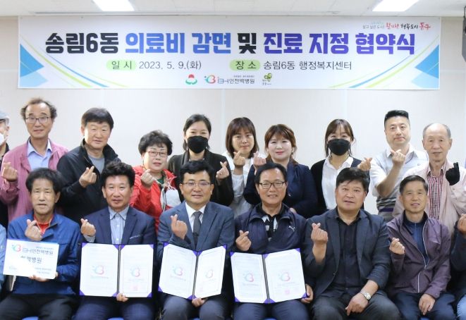 협약에 따라 송림6동 기초생활수급자, 차상위계층 등 의료취약계층은 인천백병원 이용시 외래·입원 비급여 항목 20%, 독감 예방접종도 감면율에 따라 할인받을 수 있다.