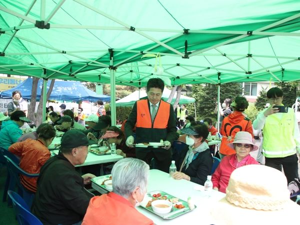 “참! 좋은 사랑의 밥차”는 관내 어르신에게 무료로 식사를 제공하는 봉사활동으로, 한국자원봉사센터협회와 협력하고 IBK기업은행의 지원을 받아 운영되며 행사에는 지역 내 어르신 300여 명이 방문했다.