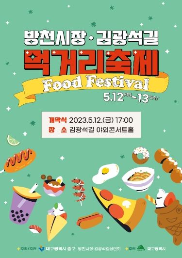 [제주교통복지신문 김강석 기자] 대구시 중구는 대구광역시 식품진흥기금 1,700여만원을 확보하여 5월 12일~13일 이틀간 방천시장·김광석길 먹거리축제를 개최한다.