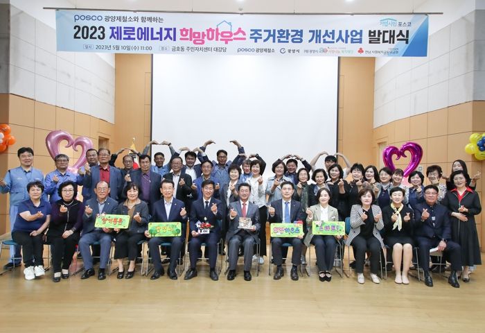[제주교통복지신문 김강석 기자] 광양시 금호동은 10일 금호동 주민자치센터 대강당에서 포스코 광양제철소, 광양시사랑나눔복지재단이 협력하여 추진하는 희망하우스 주거환경개선 사업 발대식을 가졌다.