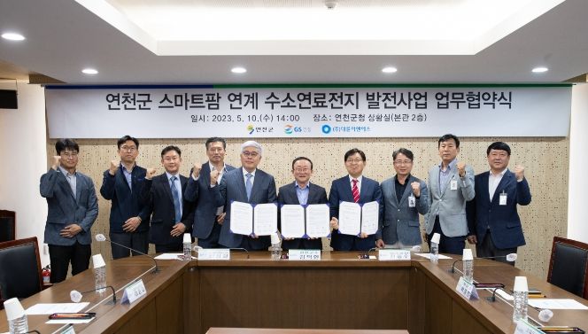 [제주교통복지신문 김강석 기자] 연천군은 지난 10일 본관 2층 상황실에서 GS건설㈜, ㈜대륜이엔에스와 ‘스마트팜 연계 수소연료전지 발전사업 업무협약’을 체결했다.