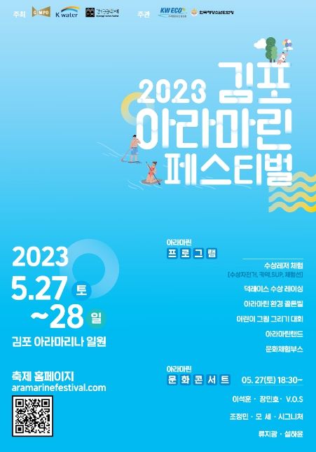 이 밖에 이번 ‘2023 김포아라마린페스티벌’에는 국민축제기획단, 덕레이스, 어린이 그림그리기 대회, 환경 골든벨, 로컬마켓 등 남녀노소 누구나 즐길 수 있는 다양한 프로그램들이 준비돼 있다.