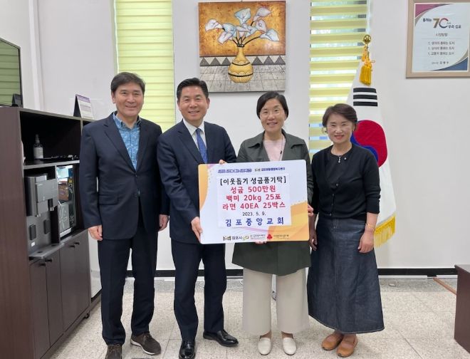 [제주교통복지신문 김강석 기자] 김포중앙교회는 지난 4월 말 이웃돕기 바자회를 통해 조성한 후원금으로 성금과 후원물품을 마련, 지난 9일 김포본동행정복지센터에 기탁했다.