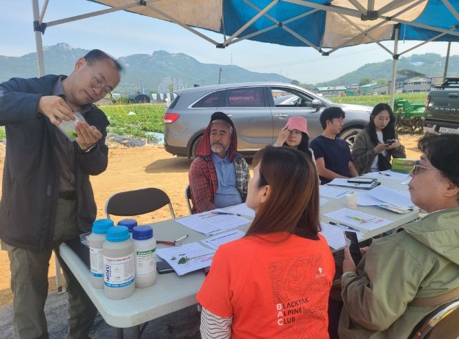 이날 심창기 박사는 이상 기후대비 감자역병을 사전방제하기 위한 아인산염 자가제조 실습 및 살포방법 등 핵심기술을 단계별로 지도하며 참여 회원들에게 큰 호응을 받았다