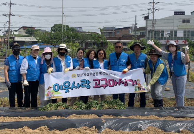 한편 바르게살기운동 팽성읍위원회는 이웃사랑 고구마심기 행사뿐만 아니라 어버이날 홀몸노인 어르신 배식봉사, 태극기 나눔 행사, 환경정화 활동 등 나눔과 봉사활동을 펼치며 지역사회에 꾸준히 이바지하고 있다.