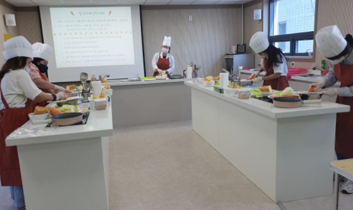 이번 쿠킹클래스 조리 메뉴는 신선한 채소를 듬뿍 넣어 파랑 빨강을 조화로 이룬 당근라페 샌드위치와 캐슈넛우유이다. 신선한 채소로 아삭한 식감을 살려 건강을 느끼게 해주며 바쁜 일상 생활속에서 누구나 쉽게 만들 수 있는 메뉴로 직접 요리 체험을 하고 시식까지 하면서 참여자들에게 큰 호응을 얻었다.
