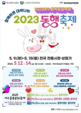 [제주교통복지신문 김강석 기자] 여수시 진남상가 일원에서 오는 12일부터 14일까지 3일간 ‘함께하면 대박나는 2023 동행 축제’가 열린다.
