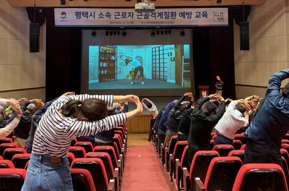 [제주교통복지신문 김강석 기자] 평택시는 11일 북부문화예술회관 소공연장에서 시 소속 근골격계 부담 작업 근로자 150명을 대상으로 근골격계 유해 요인 및 질환 예방 교육을 실시했다.