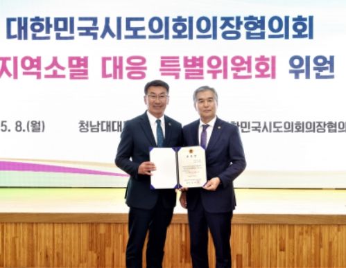 대한민국시도의회의장협의회는 지난 8일, 충북 청주시 소재 청남대 대통령기념관에서 지역소멸 대응 특별위원회 위원 위촉식을 갖고 각 시도의회 의원 1명에게 위촉장을 수여했다.