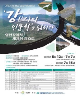 11일 나주시에 따르면 제3기 과정은 ‘강(江)의 인문학을 넓히다 : 영산강에서 세계의 강으로’라는 주제로 5월 12일부터 7월 15일까지 열릴 예정이다.