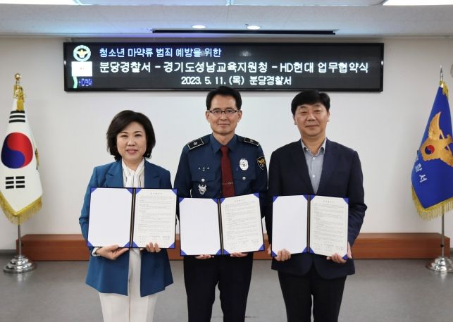 [제주교통복지신문 김강석 기자] 성남교육지원청은 11일 분당경찰서, HD현대와 청소년 마약류 범죄 예방을 위하여 업무 협약을 체결했다.