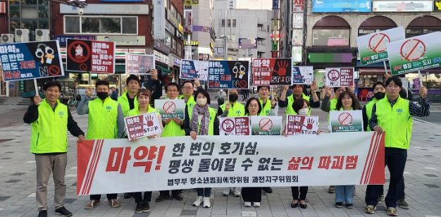 [제주교통복지신문 김강석 기자] 과천시 청소년유해환경감시단으로 활동하고 있는 법무부 청소년범죄예방위원 과천지구위원회에서는 지난 10일 중앙동과 별양동 등 상가 밀집 지역에서 시민을 대상으로 마약 범죄의 위험성을 알리는 캠페인을 전개했다.