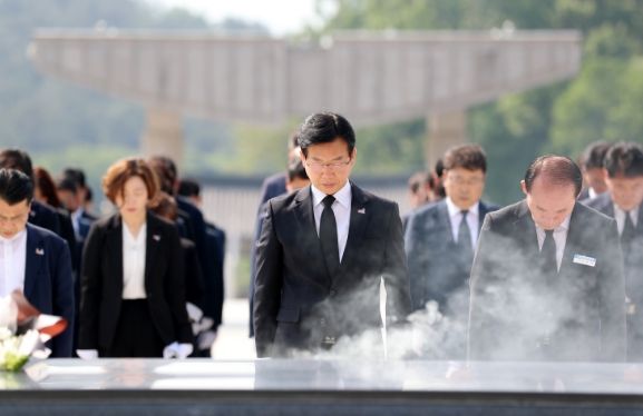 박병규 청장의 헌화·분향을 시작으로 오월 영령의 넋을 기리는 묵념을 마친 뒤에는 윤상원 열사 묘를 참배했다.