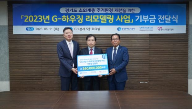 [제주교통복지신문 김강석 기자] 경기주택도시공사(GH)가 G-하우징 리모델링 사업 추진을 위해, 기부금 전달식을 개최하고 유엔해비타트 한국위원회, 경기도자원봉사센터에 3억 6천만원을 기부한다고 밝혔다.