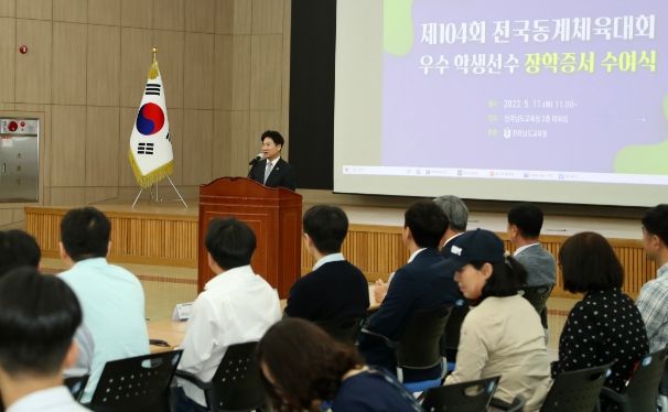 [제주교통복지신문 김강석 기자] 전라남도교육청이 5월 11일 청사 대회의실에서 전국동계체육대회 우수 학생선수에게 장학증서를 수여했다.