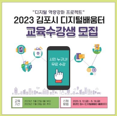 [제주교통복지신문 김강석 기자] 김포시는 시민들의 디지털 역량 강화 및 디지털 격차 해소를 위해 ‘2023년도 김포시 디지털 배움터 교육수강생’을 모집한다.