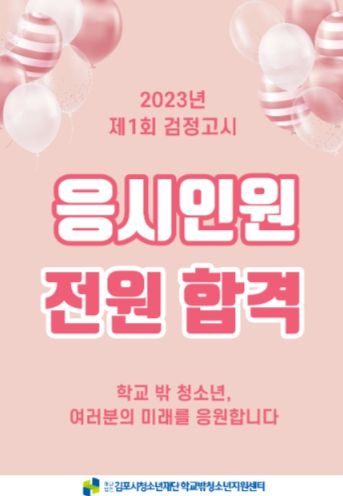 [제주교통복지신문 김강석 기자] (재)김포시청소년재단 김포시학교밖청소년지원센터에서는 2023년 제1회 검정고시에 응시한 청소년 72명이 100% 합격하는 쾌거를 이뤘다.