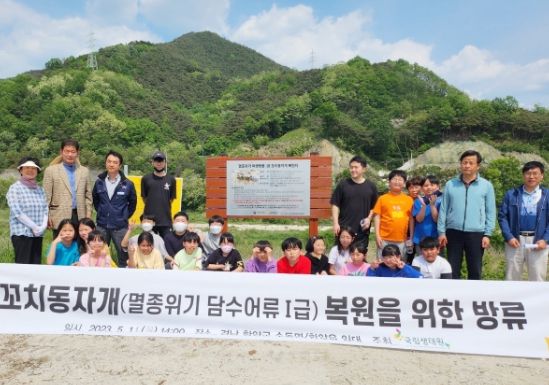 낙동강유역환경청, 함양군, 수동초등학교 학생 및 교사, 주민대표 등 약 40여명이 참석, 인공 증식한 멸종위기 야생생물 1급 꼬치동자개 준성체 500개체를 방류했다.