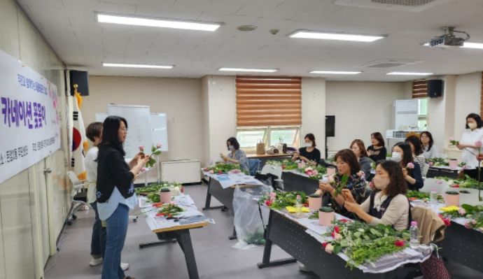 [제주교통복지신문 김강석 기자] 서울 성북구 돈암2동 주민자치회사 지난 4일 돈암2동 주민센터 다목적실에서 주민 대상‘마을배움터’프로그램으로 카네이션 꽃꽂이 강좌를 진행했다.