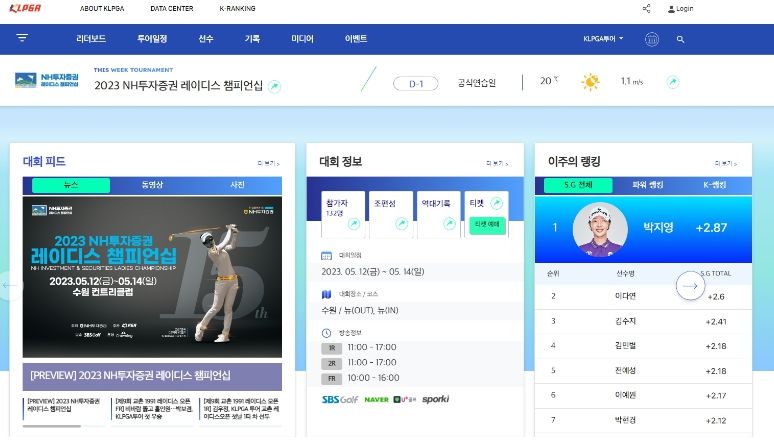 기존 홈페이지와의 가장 큰 차이는 ‘골프 팬만을 위한 홈페이지’가 됐다는 점이다. 홈페이지에 접속하면 현재 열리고 있는 대회의 피드와 기록이 가장 먼저 노출되며, 상단 메인 메뉴에서는 리더보드와 투어 일정, 선수 및 기록, 미디어 등 투어와 관련된 정보를 손쉽게 찾아볼 수 있다.