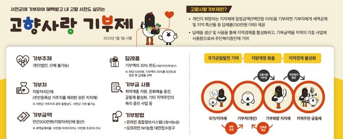 [제주교통복지신문 김강석 기자] 서천군이 고향사랑 기부자에게 다양한 답례품을 제공하기 위해 답례품 공급업체를 추가 모집한다.