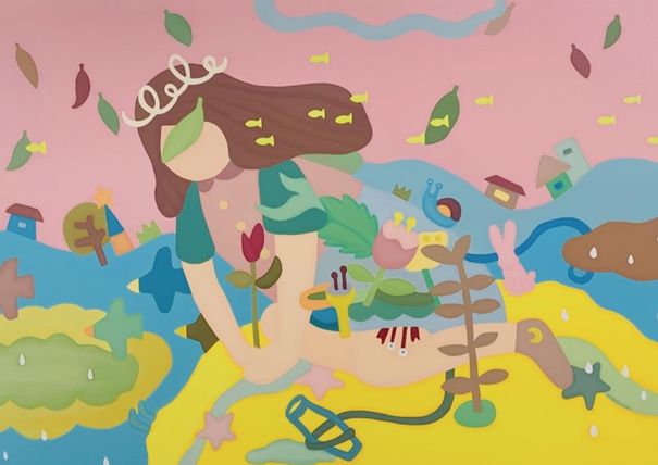 이렇듯 작가는 꿈과 자유, 삶의 평안을 바라는 상상의 세계를 동기(모티브)로 하고 있다. 상상의 세계에서 마주쳤던 자연과의 순간적인 감정들과 그 안에서 또 다른 세계가 펼쳐지는 묘사들을 캔버스 화면에 캐릭터와 함께 담아 꿈의 한 부분을 형상화했다.