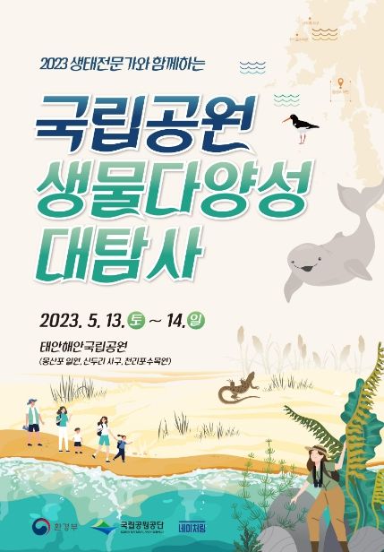 [제주교통복지신문 김강석 기자] 환경부 산하 국립공원공단(이사장 송형근)은 5월 13일부터 이틀간 ‘제1회 국립공원 생물다양성 대탐사’를 태안해안국립공원에서 개최한다. 이번 행사는 국립공원 사회관계망서비스(블로그 등)를 통해 약 80명(20팀)을 공개 모집하여 분야별 생태계 전문가와 함께 몽산포 갯벌, 신두리사구, 신진도, 마도 등 태안해안국립공원 일대의 생물종을 전문가와 함께 살펴본다.