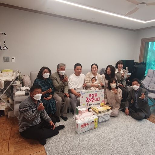 이외에도 주민자치위원회, 마을 부녀회 등 지역 기관에서도 기저귀와 농산물 등 축하선물을 전달하며 자녀의 건강한 성장과 가정의 화목을 응원했다.